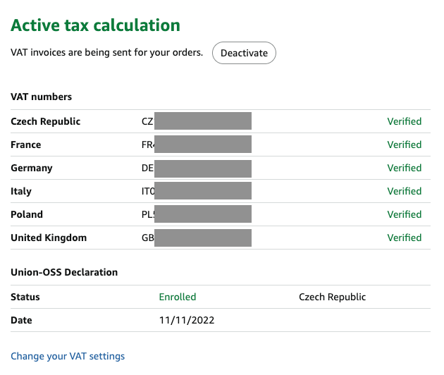 Pozor - kde skladujete zboží, má vliv na DPH. Pokud v nějaké zemi začnete skladovat zboží, máte povinnost se tam registrovat. Proto je důležité věnovat tomuto nastavení pozornost. Amazon optimalizuje primárně pro své potřeby a nehlídá povinnosti, které náleží prodejcům. Pokud mu to umožníte, přesune zboží klidně do jiné země bez vašeho vědomí, čímž vám tam vznikne daňová povinnost. Jelikož za to, že evropští prodejci plní daňové zákony, nesou odpovědnost sami prodejci a nikoli Amazon, Amazon toto neřeší a je třeba si tato nastavení hlídat.
